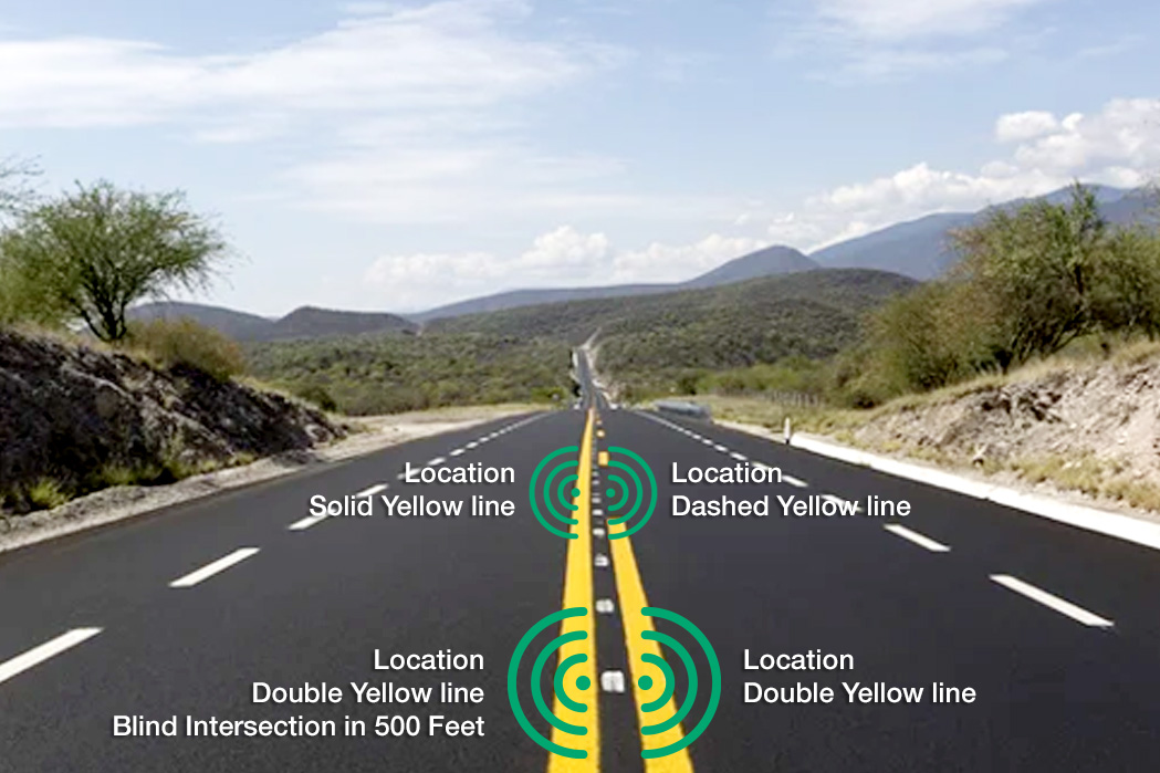 - Vehicles know location, lane, signage and object information without camera data